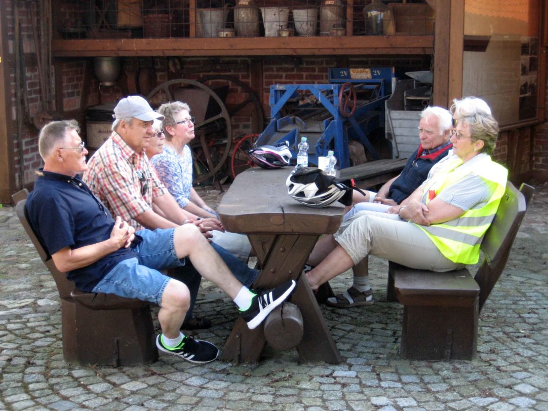 Der 1. Vorsitzende des TV Loxstedt, Frank Drop, war der 46. Teilnehmer unserer Fahrradtour am 05. Juni 2016. Alle angemeldeten Teilnehmer erschienen pünktlich und nach der Begrüßung starteten wir in zwei Gruppen zu unserer 16.5 km langen Tour. Von Loxstedt ging es nach Düring, weiter über die Lunebrücke zunächst bis nach Hetthorn. Hier stießen einige Teilnehmer aus Stotel zu uns. Nach einer kurzen Pause radelten wir über Drostendamm, Wittstedt und durch den Wasserwerkswald nach Bramstedt. In einem kleinen Häuschen nahe der Gaststätte „Bauernschänke“ befindet sich das Kaffeemühlenmuseum. Der Sammler war selbst anwesend und gab den Interessierten viele Einblicke in seine Sammlung. Der versprochene Butterkuchen und Kaffee satt zog unsere Wanderer doch recht schnell in den vorbereiteten Garten der „Bauernschänke“. Unter Bäumen und Schirmen waren die Tische gedeckt und es ging zügig los. Gegen 17.00 Uhr traten wir gestärkt den Rückweg an. Auf dem Hinweg wehte bei herrlichem Sommerwetter der Wind von hinten. Die Hoffnung er würde drehen, erfüllte sich leider nicht und so gestaltete sich der Rückweg etwas anstrengender. Von Bramstedt über Gackau und Oberheise legten wir die nächste Pause bei der schönen Anlage „Hollener Mühle“ ein. Der letzte Abschnitt durch die Wiesen nach Düring war etwas anstrengend. Doch Düring erreicht, war der Weg nach Loxstedt nur noch ein Katzensprung. Der Rückweg war mit 16 km etwas kürzer.
